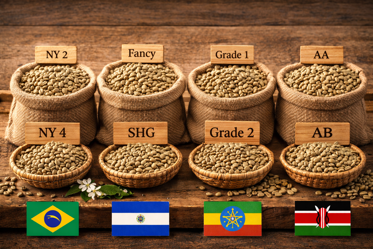케냐는 세계에서 가장 체계적이고 신뢰도 높은 커피 등급 시스템을 갖춘 나라 중 하나입니다. 등급은 주로 원두 크기와 밀도에 기반하며, 특히 AA 등급은 스페셜티 시장에서 가장 높은 평가를 받습니다. 이 등급의 원두는 산미, 향미 복합성, 클린컵이 뛰어납니다.