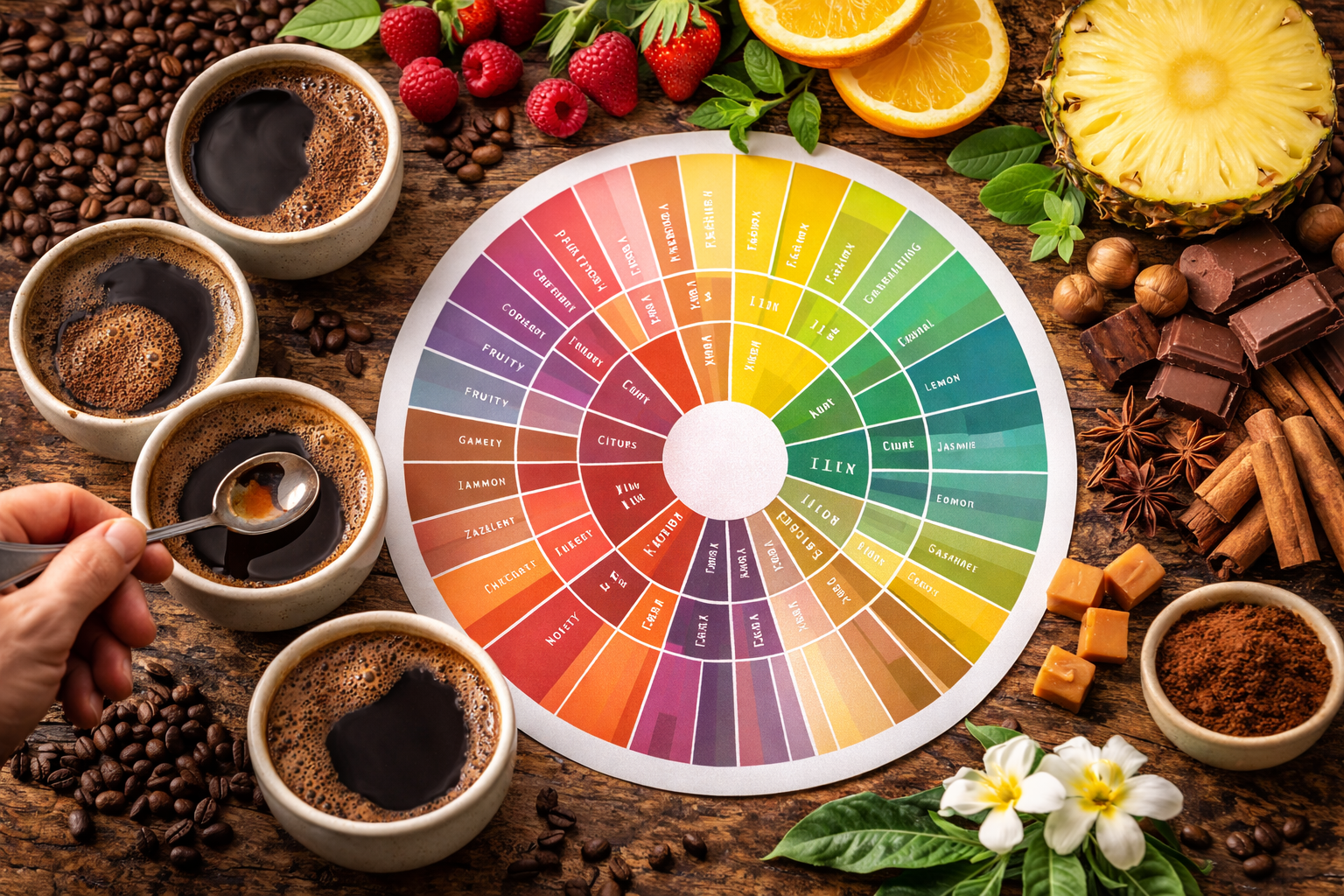 커피 맛 휠은 ‘보면서 맞히는 도구’가 아니라 느낀 뒤에 정리하는 도구입니다. 즉, 먼저 혀와 코로 충분히 느낀 후 맛 휠을 이용해 감각을 언어로 정돈하는 것이 올바른 사용법입니다.